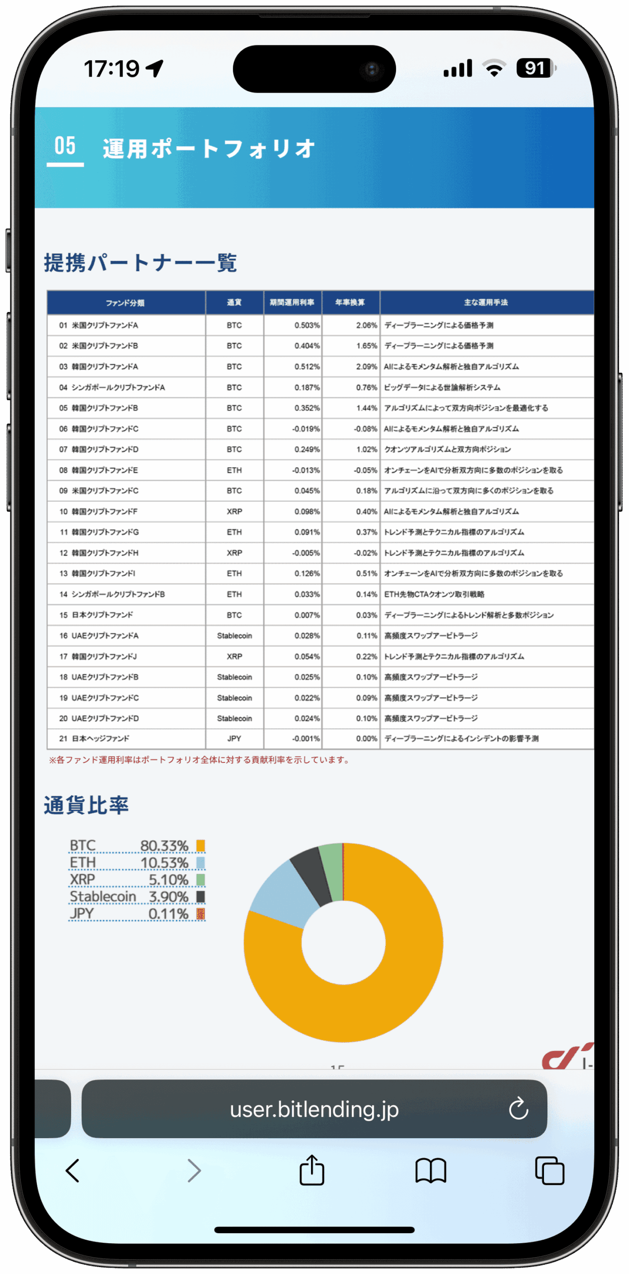 - ファンド名、通貨比率、利回り、戦略が公開されている